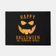 Add your family name to this no so scary carved pumpkin face Halloween doormat and welcome your guests in style