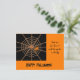 An orange spider sits patiently on his web on this fun postcard. "Join me for dinner" said the spider to the fly. The greeting "Happy Halloween" can be easily personalised, just type your preferred text in the box.