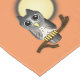 Cute grey owl sitting on a branch with a full moon behind him on an orange background