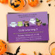 This cute and colourful invitation is ideal to celebrate a Halloween costume birthday party. It features Owl characters dressed up in different Halloween costumes. You can see a mummy, Frankenstein, Vampire, Ghost and Witch costume. The background has two tones of purple. The unisex invitation is not scary yet it's fun and modern.