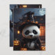 Overall, this image captures the joy and whimsy of a panda fully embracing the Halloween spirit in a magical, moonlit forest setting.
