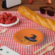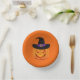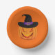 This paper bowl is shown in a festive Halloween pumpkin witch print design.