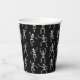 Halloween party paper cup is shown with a skeleton print.