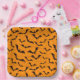 Halloween party paper plate is shown in a orange colour with a bats print.