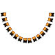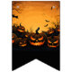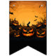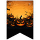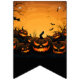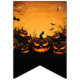 This festive Halloween party flag banner is shown with a spooky pumpkins print.