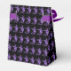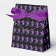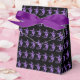 Party favour box shown in black/purple with a Halloween witch print with a purple accent ribbon. Perfect for Halloween gift giving. Customise this item or buy as is.