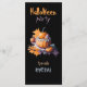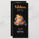 Halloween party menu. Halloween pumpkin ice cream. Glass with magic drink and Halloween paraphernalia and editable list of dishes. Black background