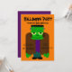 A party invitation suitable for a Halloween themed party featuring a spooky monster with a purple, black and orange theme. This invitation is fully customisable to include your own personal details.