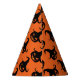 This party hat is shown in a orange colour with a Halloween scary pumpkin print.