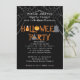 This flat invitation by Noteworthy Collections has a cool halloween theme, with a spider web at the top of a black background, and the words "Halloween Party" written in a combination of orange letters and halloween icons.