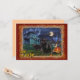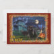 Spooky scene with two black cats in front of a haunted house with ghosts, bats, a pumpkin and a witch flying on a broom across a full moon. Text "Join the Party". Backside text "You're Invited to a Halloween Party!". Remember to personalise General Info about Party, Date / Time, Location, RSVP