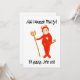 A Halloween Party Invitation with a child dressed in a red devil's costume, from a design handpainted in watercolours by Judy Adamson. The text on the front says, 'Halloween Party! Please join us!' and the back is left blank for you to fill in the details of the party.