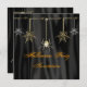 A chick black billowing background to gold coloured spiders and spiders webs.