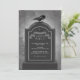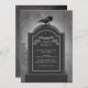 Creepy Halloween invitation featuring a tombstone with a black crow.