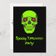 A scary green glowing skull with red eyes that glow on the front of the invitation. The back of the card you can customise your message and details. Enjoy your Halloween party!