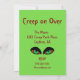 Vampire eyes are spooky. Bright green to match the eyes with blood red text RSVP information.
