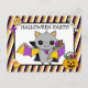 Invite your friends and family to your Halloween party with this cute Halloween invitations with a cartoon bat holding candy in his wing.