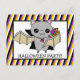 Halloween Party Invitation with Bat Holding Candy Postcard