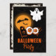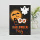 Halloween Party Invitation with Ghost Boo and Moon. Festive invitation card for Halloween costume party. Editable holiday flyer. Create your own fun card and invite your friends to a Halloween party. Indicate the date time and place of your fun party.