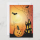 Jack o' lanterns decorate this spooky Halloween party invitation done in orange and black.