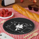 Party paper plate shown in a Halloween witch print.