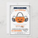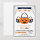 Bright and playful Halloween invitation featuring a smiling pumpkin candy basket and festive treats! Perfect for kid-friendly parties, community events, or classroom celebrations. Add your own details and invite everyone for an unforgettable Halloween bash!