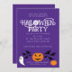 Halloween party pumpkins bats on purple invitation