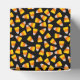 Party favour box shown with a festive Halloween candy corn print on all panels.