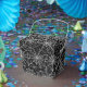 Party favour box shown with a Halloween spider webs print on all panels.