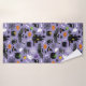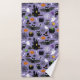 Funny Halloween pattern with bats, cats, spiders, ghosts, pumpkins, haunted house, lollipops.