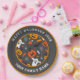 Traditional Halloween colours selection of symbols in a seamless pattern and customisable text.