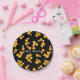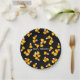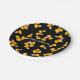 Candy corn paper party plates with pattern of randomly strewn candy corn pieces on a customisable black background and customisable text that reads, "Happy Halloween" - perfect for a kids' or adults' Halloween bash - by katz_d_zynes | part of katzdzynes' Halloween candy corn collection >>> https://www.zazzle.com/collections/119793208103154271