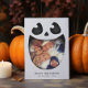Cute Halloween photo card featuring a photo inside a Jack O Lantern style black and white skeleton face.