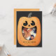 Cute Halloween photo card featuring a photo inside an orange Jack O Lantern pumpkin.