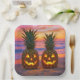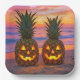 Halloween Pineapple Jack-o-lanterns On a Beach Paper Plate