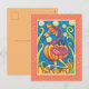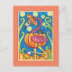 HALLOWEEN PINK FLAMINGO & BLACK CAT IN PUMPKIN HOLIDAY POSTCARD
