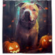 Halloween Pitbull With Pumpkins Scary Shower Curtain