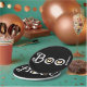 Halloween Decorations Custom Halloween Paper Plates & Decor Halloween BOO Plates Festive Halloween Ghost Paper Plates Click "customise" to Add Text Choose Fonts Change Language and Custom Colours Personalised Fun Halloween Art Paper Plates, Decorations and Party Gifts by Canadian Artist / Designer Kim Hunter. See www.kimhunter.ca for many more Halloween Gifts & Shirts Online.