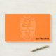 Post it note shown in an orange colour with a festive Halloween skull and bats print.