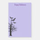 Post note shown in purple with a spooky Halloween bats print.
