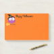 Post it note shown in a orange colour with a festive Halloween owl print.