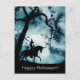 A beautiful postcard with a witch riding a unicorn with an owl and black cat.  Super cute fantasy Happy Halloween postcard!
