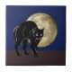 Halloween Prowling Black Cat On A Full Moon Night Ceramic Tile