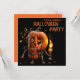 A halloween funny pumpkin jack-o'-lantern in the shape of the letter "P" holding a lamp with a flame.
