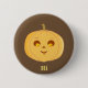 Halloween pumpkin on brown background button. Hi word can be personalised.