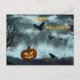 Halloween pumpkin and raven invitation postcard