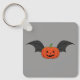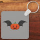 An illustration of a cute cartoon halloween orange pumpkin bat with black wings. This magical creature design is a gift idea for magic or spell lovers and treat or trick lovers.