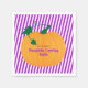 This Halloween Pumpkin Carving Party paper napkin features a whimsical graphic of a fresh picked pumpkin on a bright purple and white striped background. Custom text allows you to add your name.