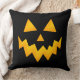 This throw pillow makes your Halloween decorating easy with a glowing orange Jack o Lantern pumpkin face!