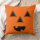 This festive Halloween throw pillow is shown in a black and orange pumpkin face print.